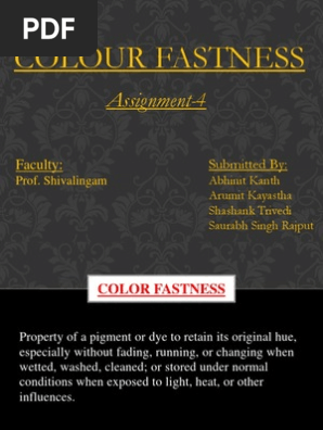 Terminology 3 1 colorfastness n the resistance of a material to change in any of its color characteristics to transfer of its colo.